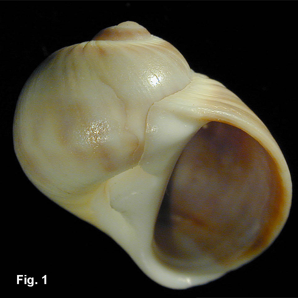 Natica gualtieriana Recluz, 1844 Description: Shell solid, sculptured by strong oblique axial grooves immediately below the suture. Umbilicus completely closed by columellar callus, leaving only a semicircular groove. Colouration variable and indistinct; sometimes uniformly fawn or grey with a white band below the suture and at base of body whorl. In other specimens, up to five diffuse grey or brown spiral bands are present. Columella and callus white. Operculum calcareous, white. Size: Up to 25 mm in length. Distribution: Indo-West Pacific; in eastern Australia, as far south as Tuross Heads, NSW. Habitat: On sand flats in bays and inlets. Uncommon in NSW. Synonym: Notocochlis vafer (Finlay, 1930) Figs. 1,2: Burrill Lake, NSW (C.358893)