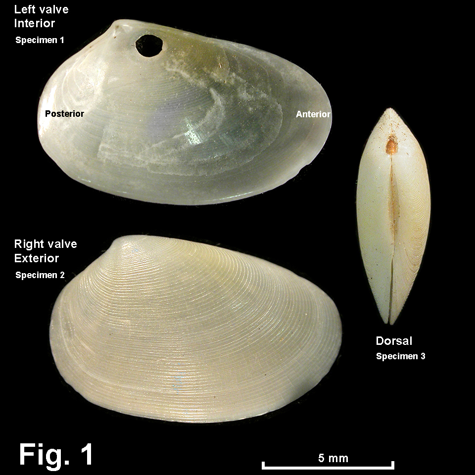 washup from harbour and open ocean beaches, and down to 64 m. Common. Comparison: This species is characterised by the umbo being at