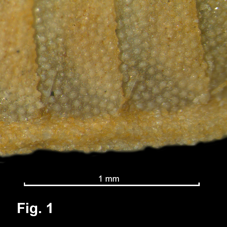 Leptochiton badius (Hedley & Hull, 1909) Description: Animal small, elongate-ovate, moderately broad, girdle relatively narrow. All valves sculptured with small granules; on median valves arranged in longitudinal rows in central areas and curved rows or randomly placed in lateral areas. Girdle with extremely small, ovate, striated scales, 0.04 mm long. Colour uniformly fawn or brown. Size: Up to 6 mm in length. Distribution: Endemic to Australia: Port Cartwright, Qld, southward and around southern Australia to south-western WA, including Tas. Habitat: Lives under stones embedded in sand at and below low tide level. Common. Comparison: The small size allied with granules over all the surface and the extremely small girdle scales is sufficient to identify this species. Synonymy: Terenochiton iscus Cotton & Weeding, 1939 from SA is a previously recognised synonym. Remarks: The foot of the animal is deep red in NSW specimens. Fig. 1: Long Reef, Collaroy, NSW (C.054493). Fig. 2: Sculpture detail. Same specimen as Fig. 1. |