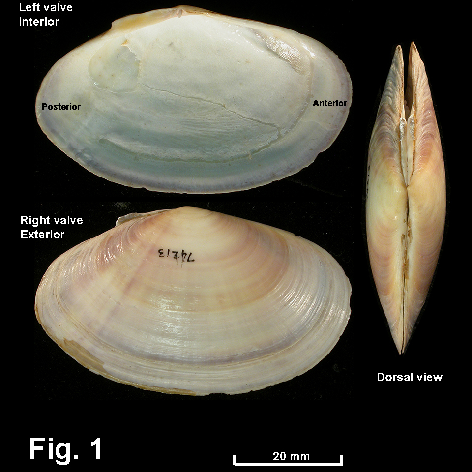Shell moderately solid. Shape elliptical-orbicular; umbo