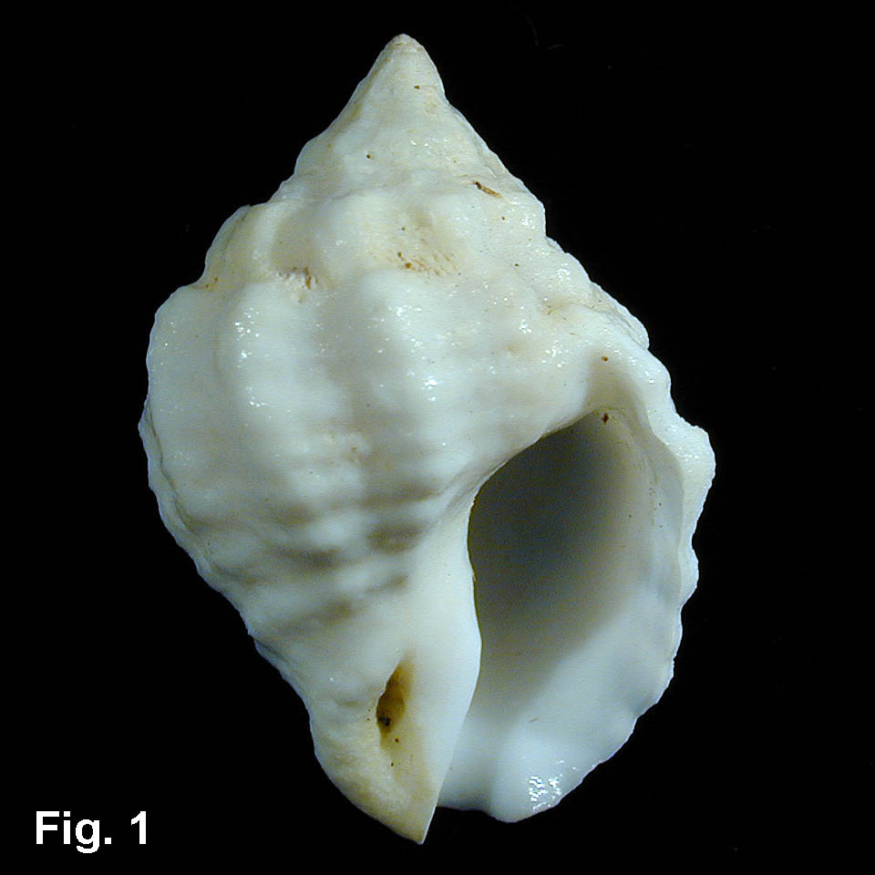 Morula nodulifera (Menke, 1829) Description: Whorls rounded, sculptured with broad, rounded, oblique axial ribs. Ribs crossed by numerous shallow spiral grooves, and a deep groove just in front of the suture, producing a row of sutural nodules. Aperture narrow, columella with 2 or 3 obsolete or distinct teeth anteriorly, outer lip with 6 teeth; posterior canal distinct. Color white; usually severly eroded. Animal vivid green in colour. Size: Average length 15-20 mm, maximum 25 mm. Distribution: New Caledonia, northern New Zealand and eastern Australia, as far south as Sydney. Moderately common. Habitat: Intertidal on rocky shores. Synonyms: Purpura chaidea Duclos, 1832 Figs. 1,2: Long Reef, Collaroy, NSW (C.80485)