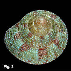 the spiral rows of beads. Base flat in juvenile specimens, rounded in